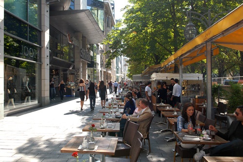 Ένας όμορφος δρόμος με τις καστανιές και τις γέφυρες να συμπληρώνουν αρμονικά το σκηνικό. Φυσικά με το «KO» να είναι η κύρια ατραξιόν προσέλκυσης πελατών, αλλά και στους γύρω εμπορικούς δρόμους (Flingerstrasse και Shadowstrasse) να προσφέρουν πιο χαμηλές τιμές και ενδιαφέρουσες επιλογές.